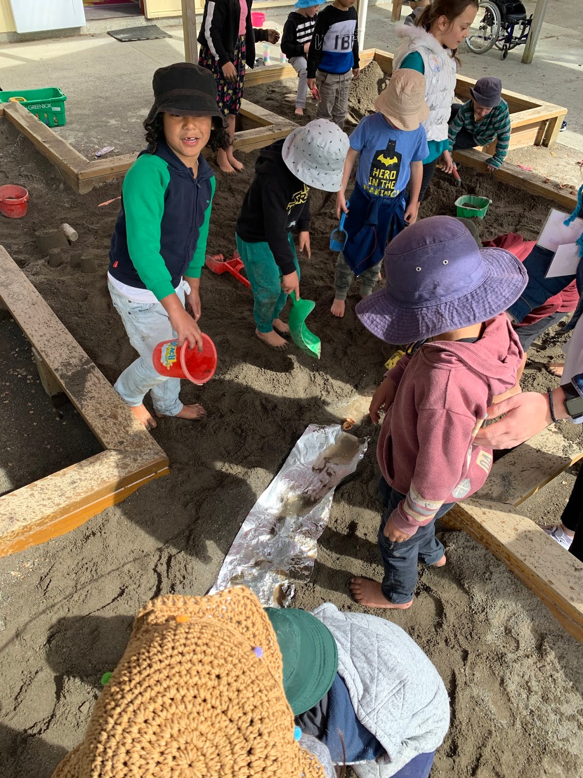 Everyone worked well together to form a lake and river in the mountains. River was a great hose man!